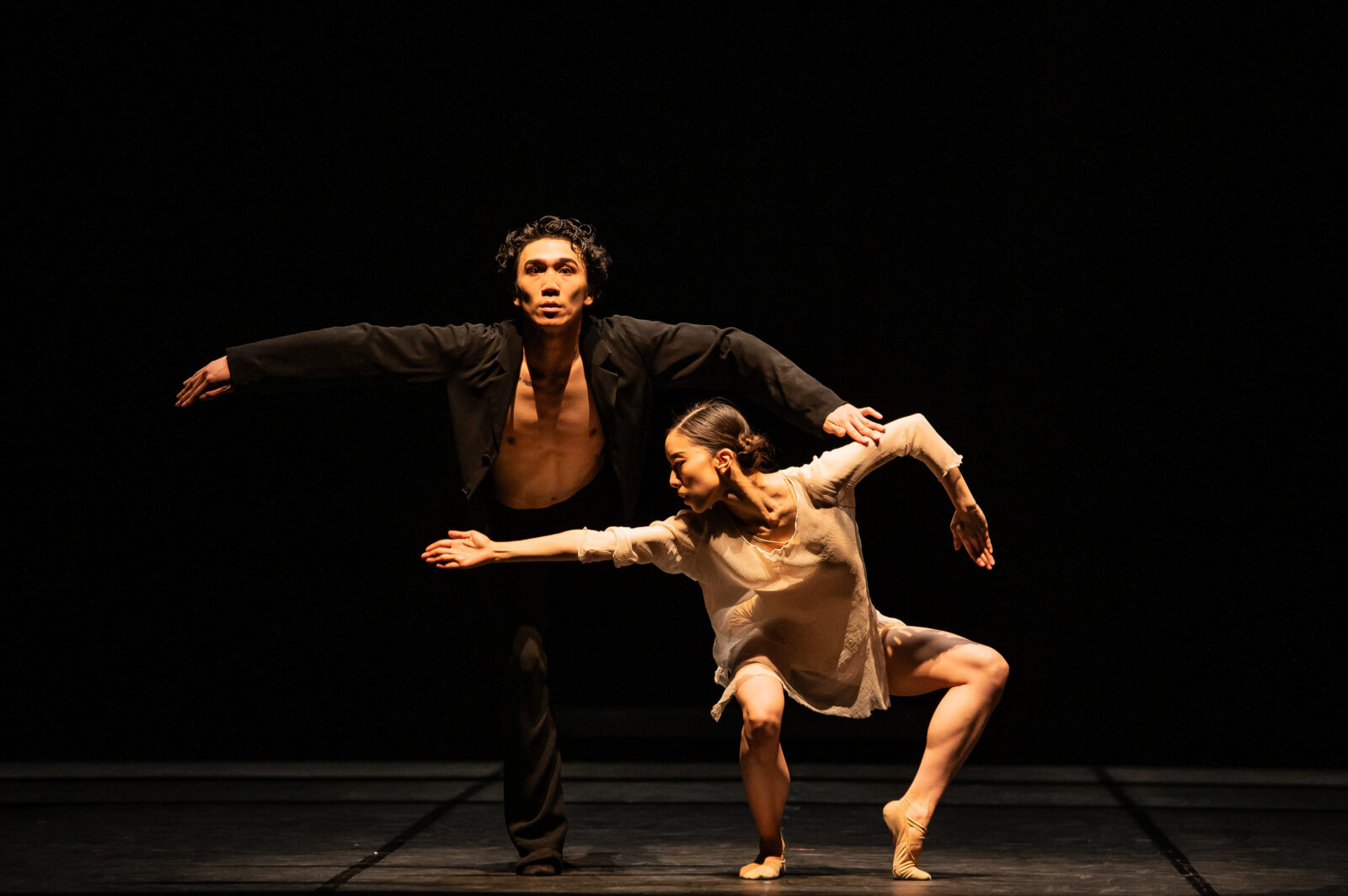 “Meille on tärkeää kohdata tanssijat paikan päällä harjoitussalissa. Haluamme päästä keskustelemaan kasvotusten ja tuomaan esille muutakin kuin liikesarjat – jotain, mikä on paljon syvemmällä teoksen ytimessä”, koreografikaksikko avaa.